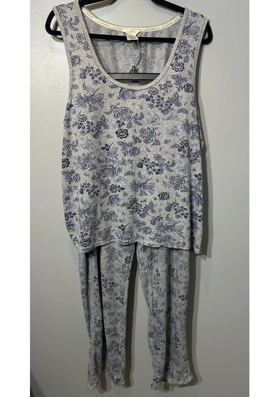 This Lucky Brand women's pajama set in size 2XL features a blue floral tank top and matching pants,... Show more