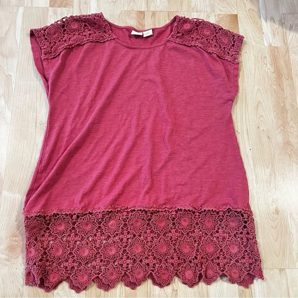Lucy + Laurel Maroon Lace Trim Top Women’s Medium Red - $15 - From Alyssa
