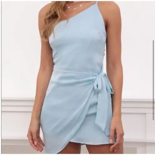 Lucy In The Sky Santorini Satin Wrap Dress One Shoulder Mini Length Sleeveless Sexy Side Tie Zip Up... Show more