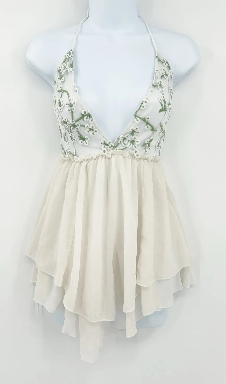 Lucy In The Sky Womens Boho Fairycore Coquette Embroidered Floral Romper in White and Green. Size Ex... Show more