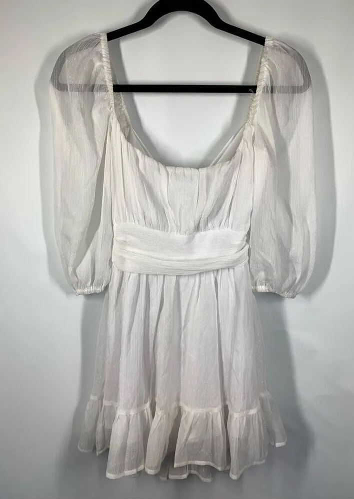 Lucy in the Sky Women's Shimmer Puff Sleeve Tie Back Mini Dress White Medium Brand: Lucy in the Sky... Show more