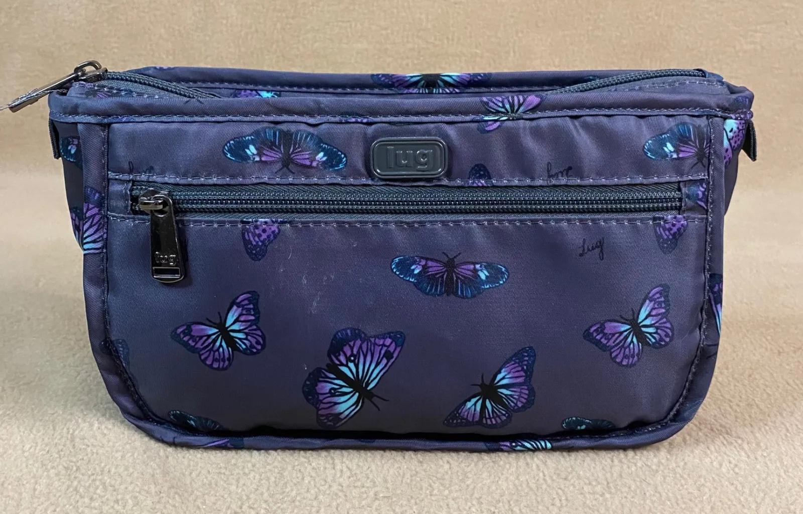 Lug Parasail Butterfly Grey Print Cosmetic Travel Toiletries Bag Zip Makeup EUC Gray - $25 - From Andrea