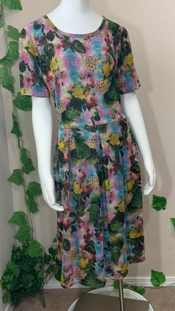 Dress by LulaRoe Brand Style: Amelia Stretchy Knit Fabric Fitted Structure with Stretch Flowy Ful... Show more