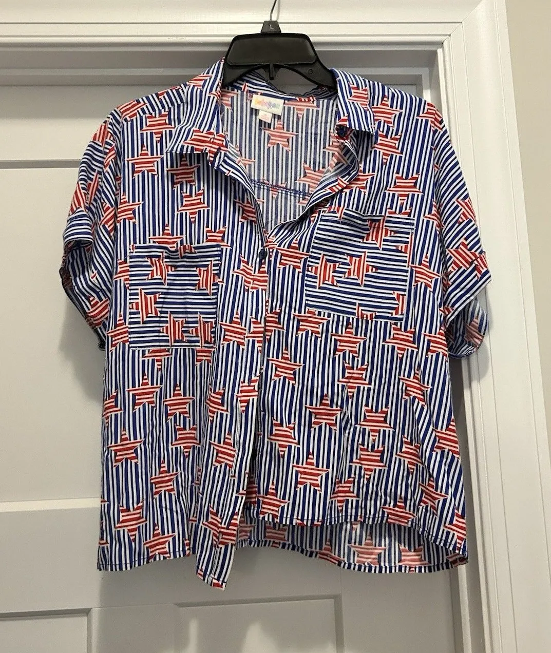The LuLaRoe Amy Womens Button Up Shirt in size small is a patriotic-themed top featuring a striped p... Show more