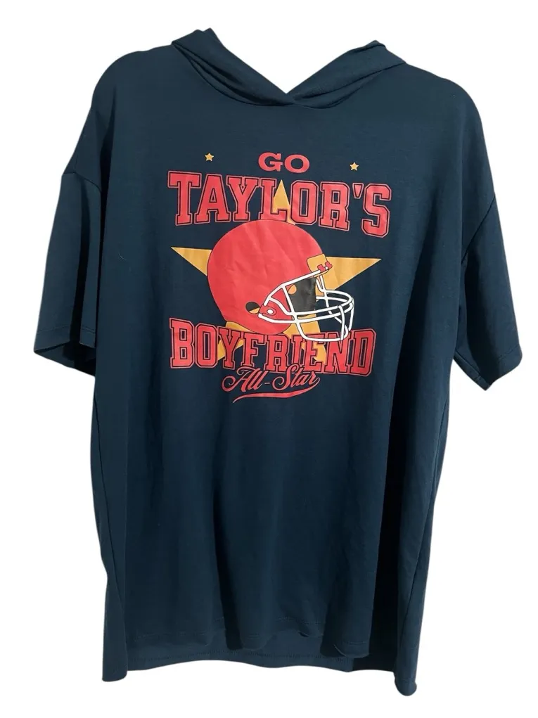 Size small Dark blue hoodie with bold sports graphic. Comfortable and stylish , loose fit 31” leng... Show more