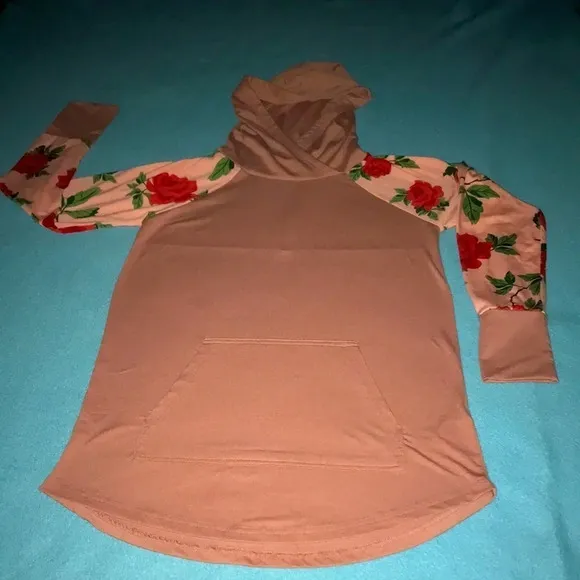 LuLaRoe long sleeve hoodie Sooo pretty! Very soft & cozy. Beautiful rose print sleeves. Has a hood... Show more