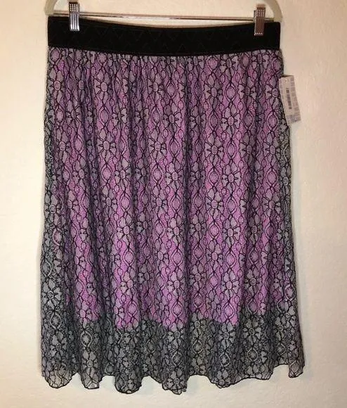LuLaRoe Black Floral Lace over Pink Lola Skirt XL BNWT. Skirt is black lace in floral patterns. Lac... Show more
