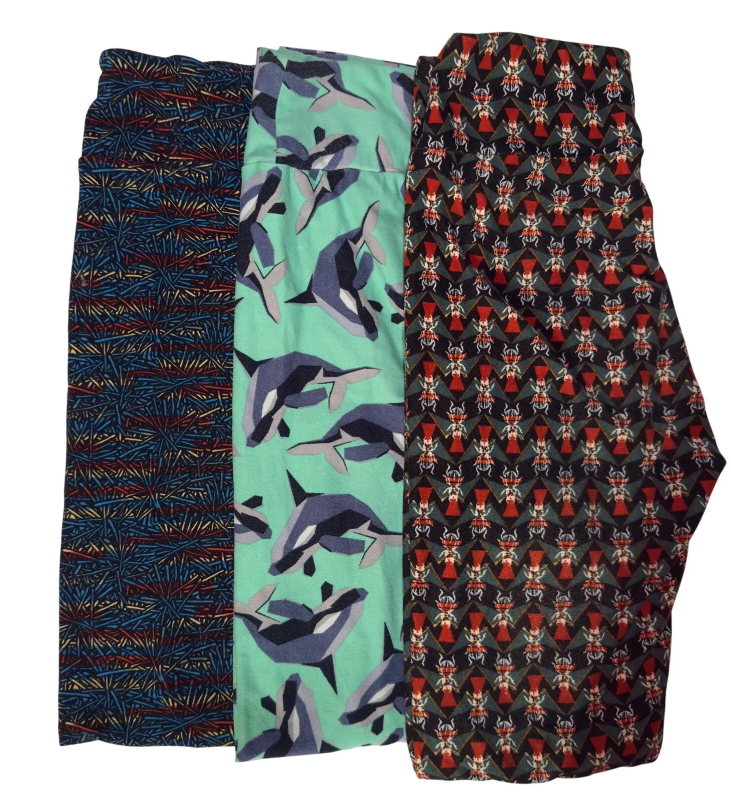Lot of 3 pairs of Luluroe Tall and Curvy Leggings. Shark design, Fireworks design and Bug design. Su... Show more