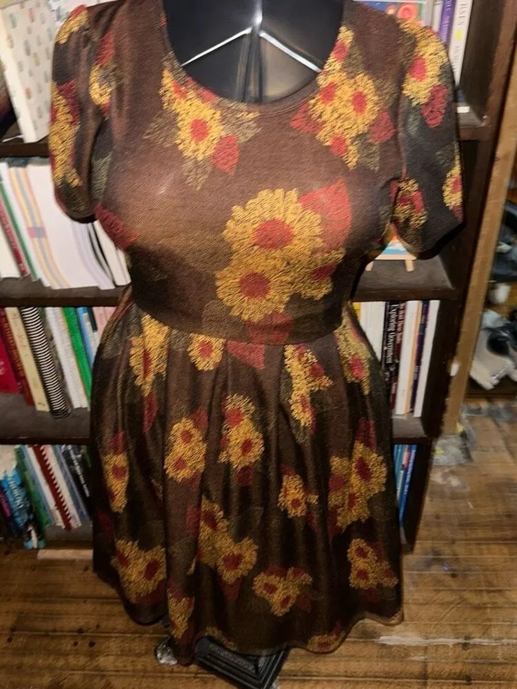 Lularoe brown, floral, fit and flare, travelcore, comfortable, knit dress. Pockets. Zipper down the... Show more