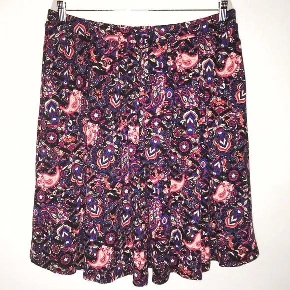 Purple, Pink & Black Madison Skirt LuLaRoe 2X EUC. Pretty black background with patterns all over in... Show more