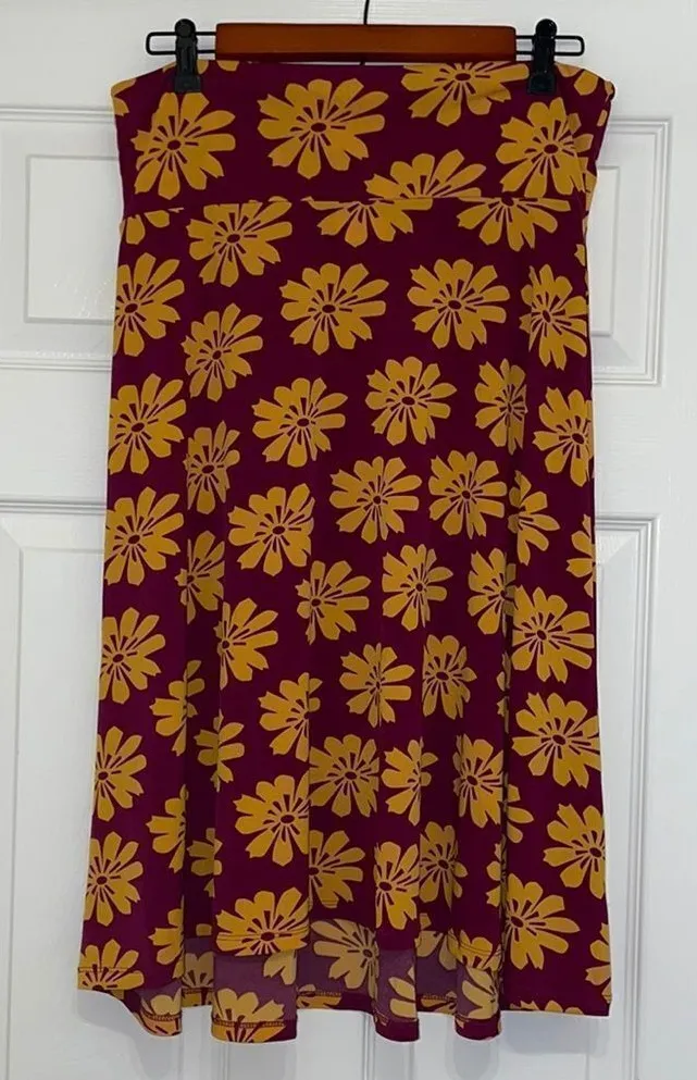 LuLaRoe Purple & Gold Floral Azure A-line skirt, size large. NWOT. These colors are perfect for a st... Show more