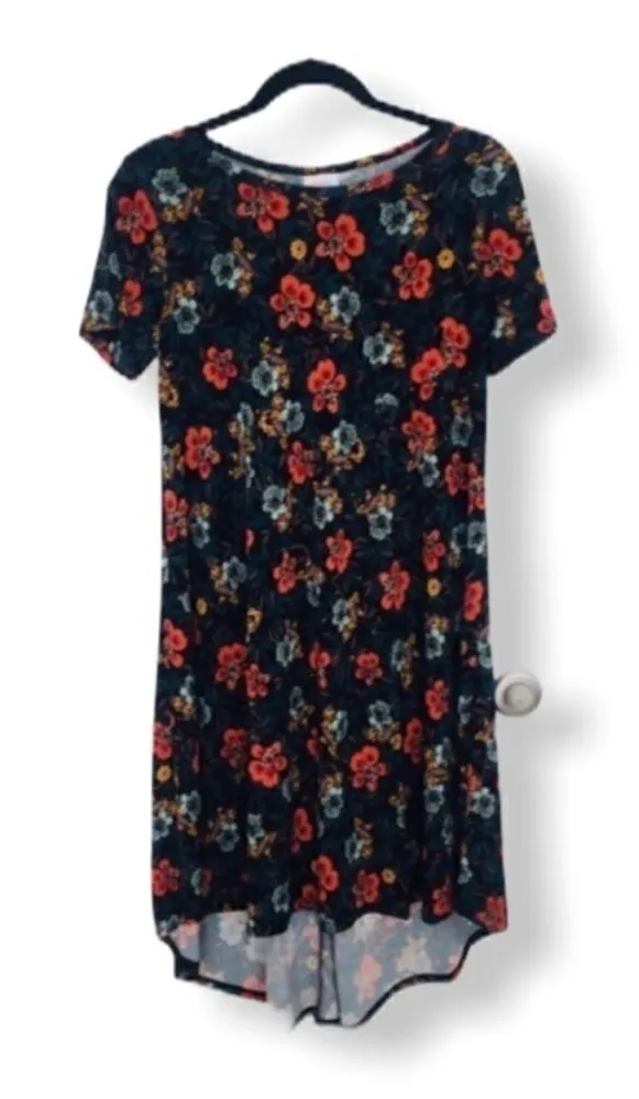 LulaRoe Carley Dress with orange and blue flowers - slinky/stretchy material