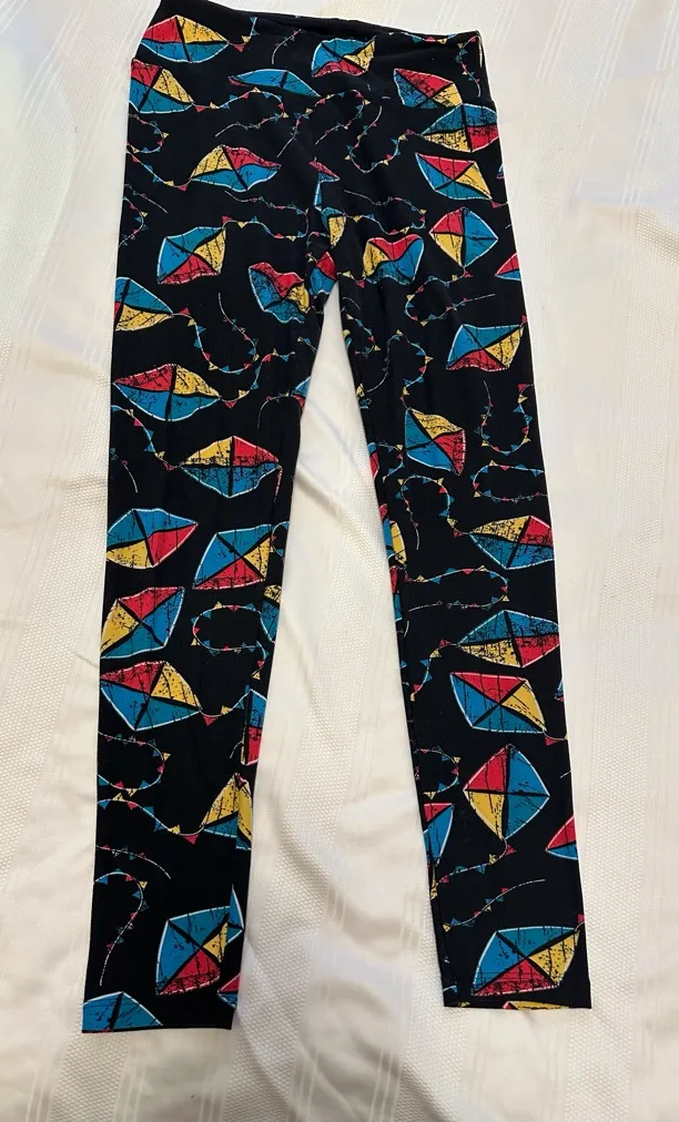 Fun leggings with a kite pattern. Features black, red, yellow, and blue colors. Great for playful ou... Show more