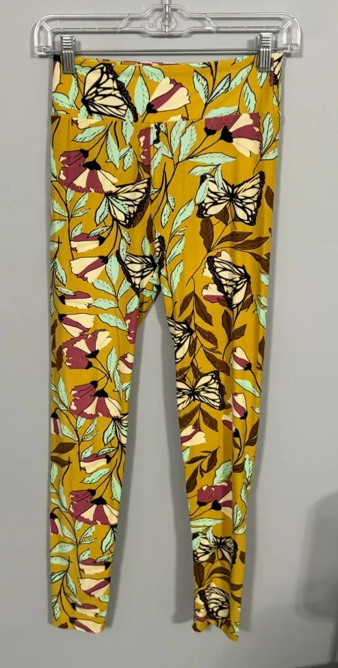 Lularoe Yellow Butterfly Floral Leggings in Women's One Size Fits Sizes 2 - 10. Polyester & spandex... Show more