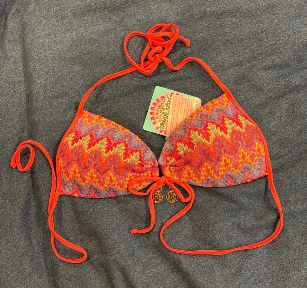 Luli Fama Song of the Sea bikini top molded push up halter sz M new with tags Orange Size M - $40 New With Tags - From Anna