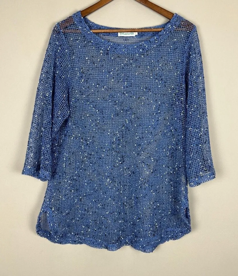 Lulu B Tunic Top Womens XL Blue Net Mesh Mermaid Fishnet Open Knit 3/4 Sleeve Very good condition!... Show more