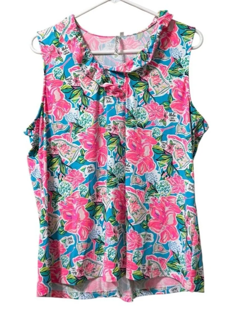This top is preowned and in great used condition! Lulu-B Women Size XL Sleeveless Ruffle Neck Hawaiian Floral Stretch Lightweight ***Please be advised, color may appear more vibrant, lighter/darker in pictures due to flash, contrast, lighting or your phone/computer screen set up, etc. I try to described color as best as possible. I do check every item very closely while taking pictures and while packing it for shipping but it is very easy to still miss a stain or small damage. So please, if you receive an item with a defect not mentioned on the description, message me and I will do my best to fix the problem. Thank you! This item is pre-owned. Any questions please dont hesitate to ask.