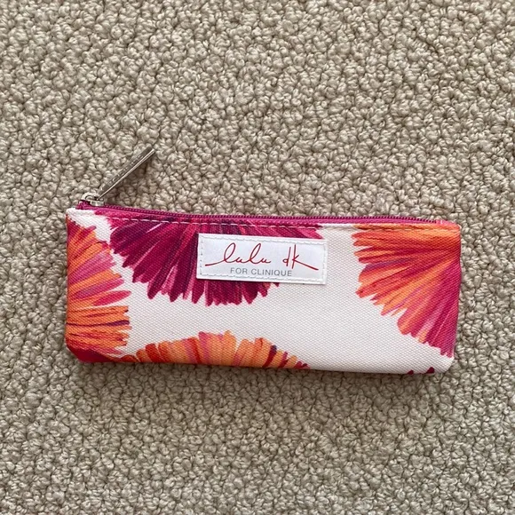 Lulu dK for Clinique Floral Small Pouch Zipper Bag Flowers Pink Red White EUC Excellent condition! Measures about 7” by 2.5” (a small size) Very light signs of wear with no notable marks except one very small scuff on the inside - see last photo. Feel free to ask questions! NOTE: due to the low cost of this item, the price is firm.