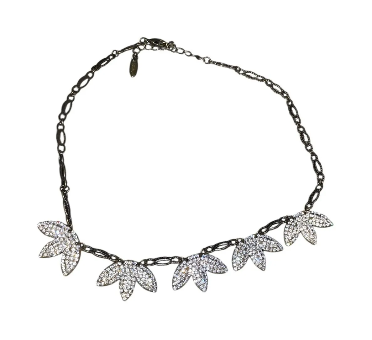 The Lulu Frost Rhinestone Leaf Statement Necklace is a stunning piece adorned with a floral cluster... Show more