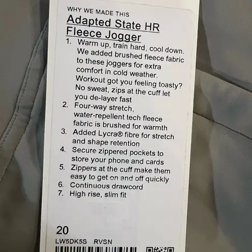 Lululemon Adapted State HR Fleece Jogger Sheer Oak Women’s Size 20 High Rise Slim Fit New * Sec... Show more