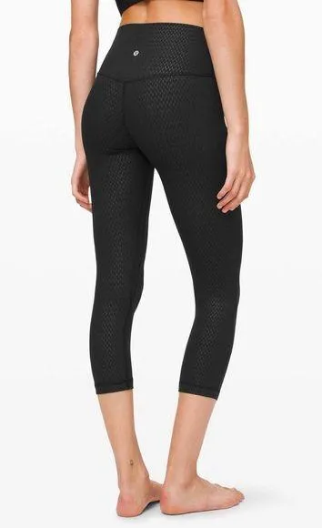 Lululemon Womens Leggings Sz 4 Align Crop Leggings Black Diverge Emboss design Nulu fabric High ris... Show more