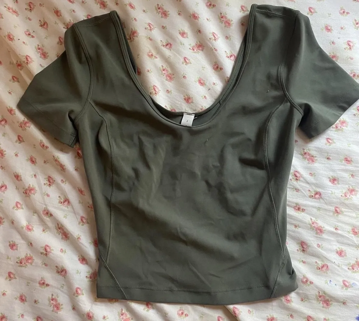 SIZE 2 OLIVE/SAGE GREEN LULULEMON ALIGN TEE #lululemon #aligntop #preppy #athleticwear #fitnesstop