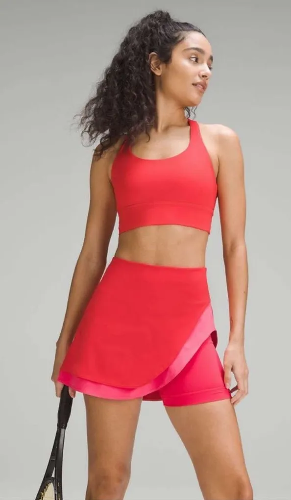 Lululemon Asymmetrical Layered High Rise Tennis Skirt, size 2 in Hot Heat/Lip Gloss/Red Glow excell... Show more
