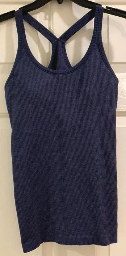 In great condition, comes with built in bra, and super comfy! Navy blue