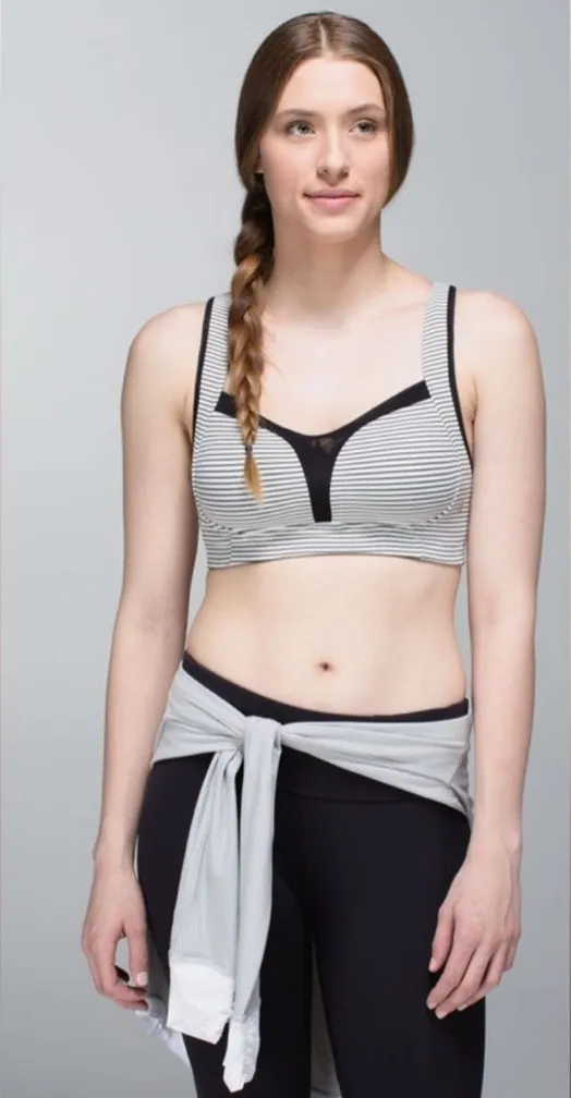 Discover the perfect blend of comfort and style with this black and white sports bra from Lululemon... Show more