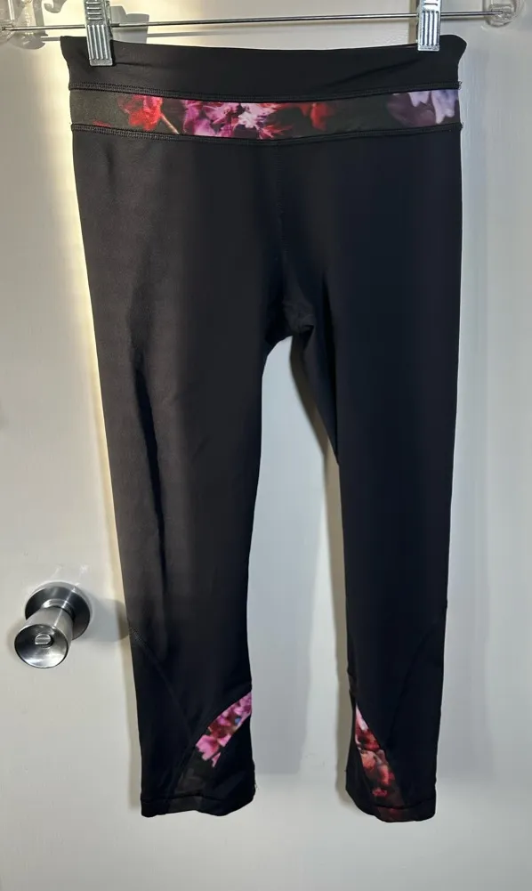 Stylish black leggings with vibrant floral accents. Perfect for active women good condition
