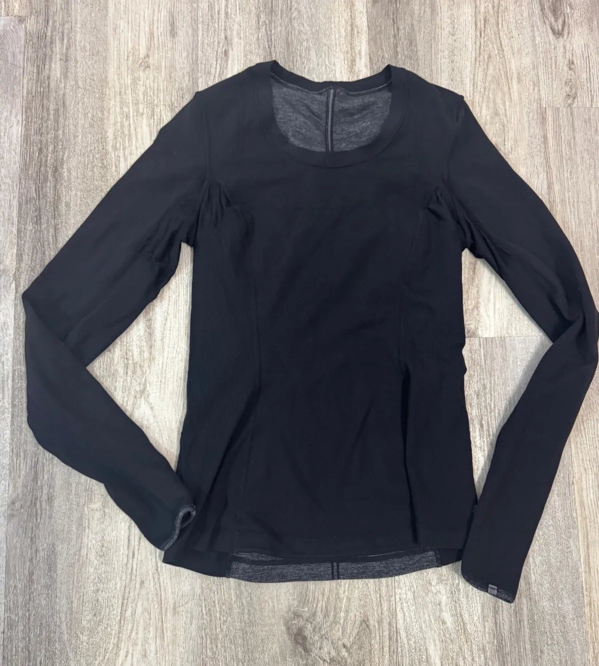 Lululemon long sleeve athletic top in black with a classic scoop neckline and convenient thumbholes.... Show more