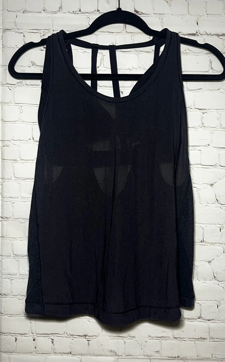 Excellent used condition. Lululemon athletic tank top in black with a built-in bra and a strappy cri... Show more