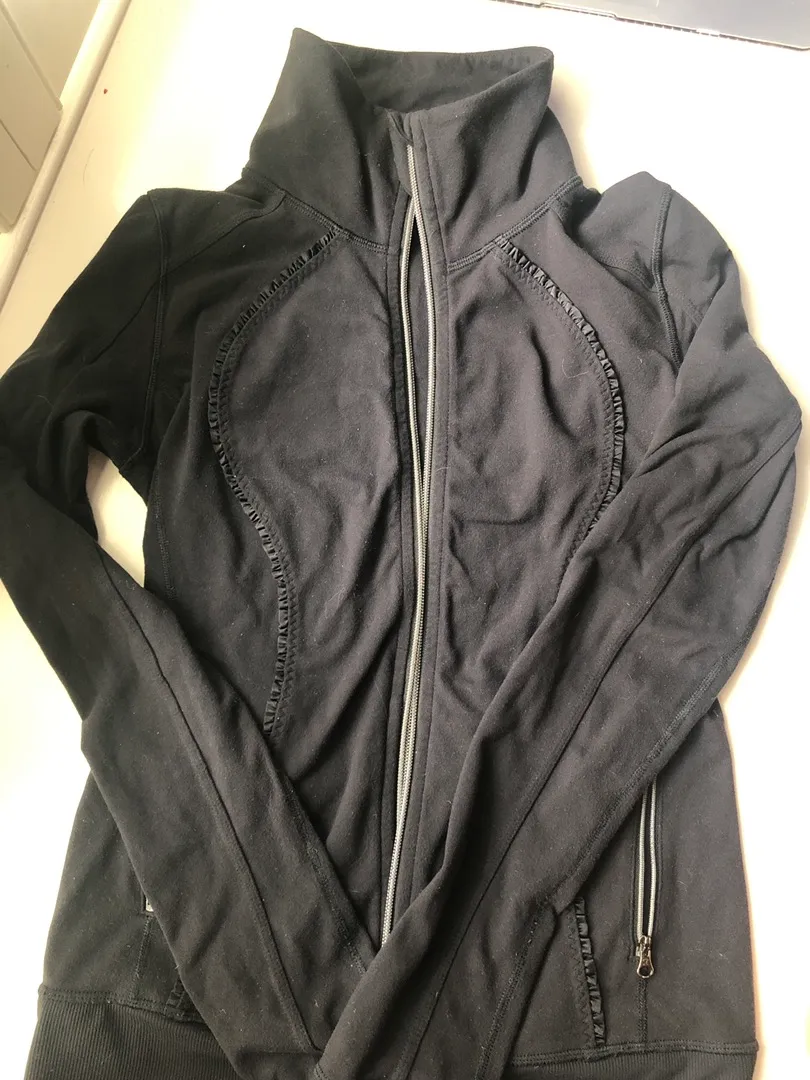 black zip up lulu jacket cut out tag but size 2 or 4