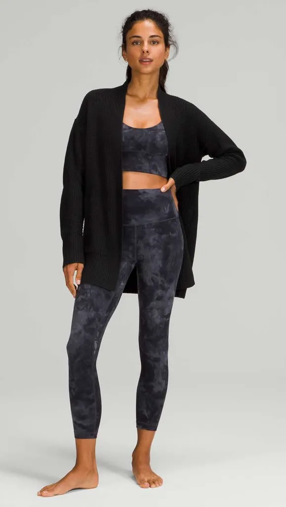 Elevate your cozy layers with this Lululemon Cashlu Sweater Wrap in classic black. Soft and luxuriou... Show more