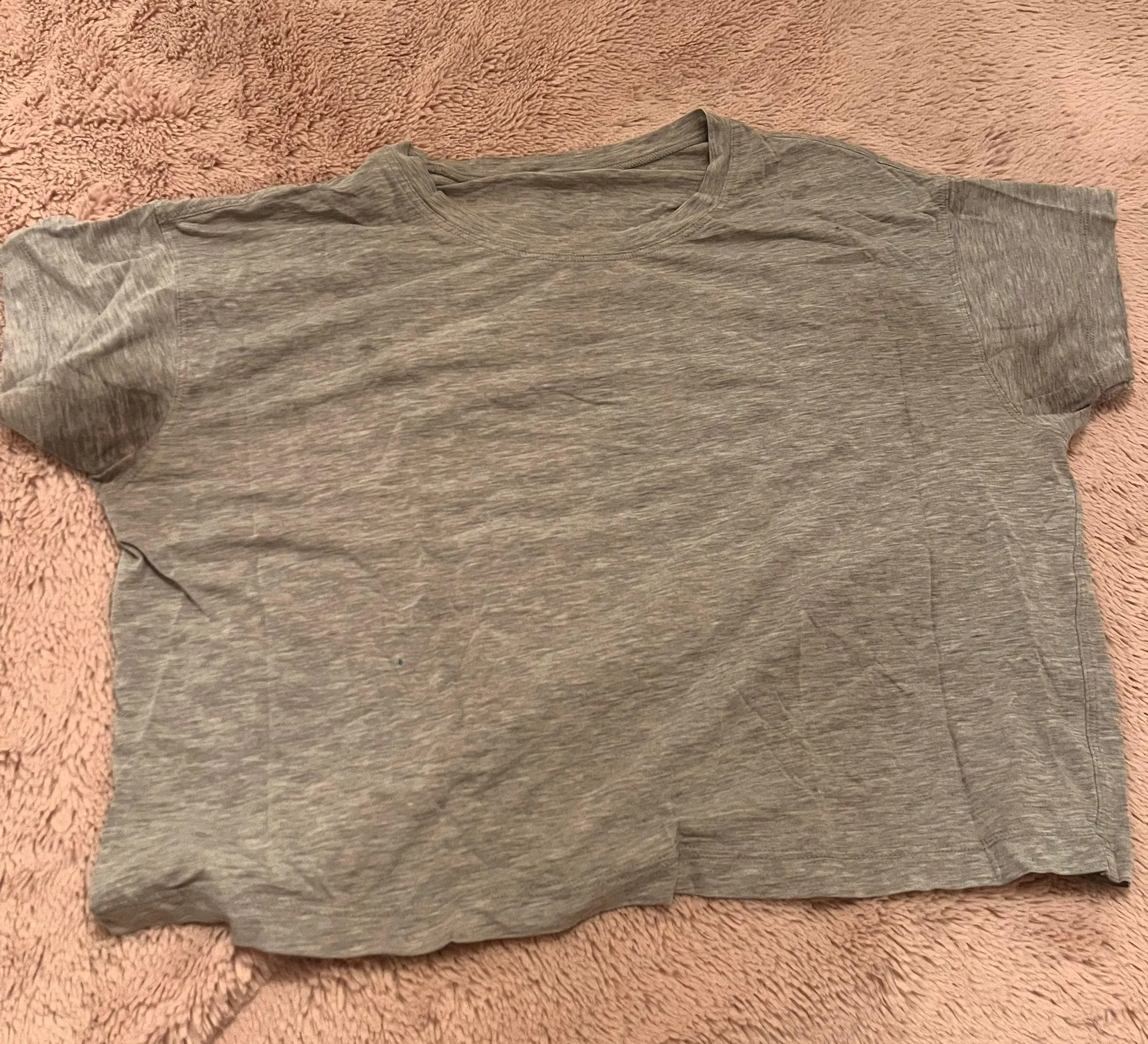 Lululemon Grey Cate Crop Tee! So cute and comfy and not too thick! perfect for running! light and ai... Show more