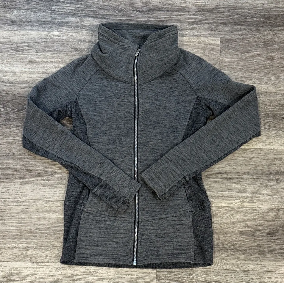 Charcoal zip-up jacket with a sleek design. Ideal for everyday comfort. P 18” L 26” Excellent cond... Show more