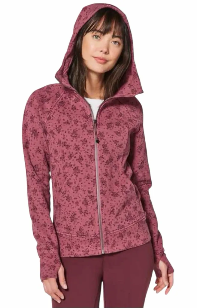 Lululemon Cotton Fleece Pixie Floral So Merlot Redwood Scuba Hoodie Jacket size 4 Style W4AFRS Good... Show more