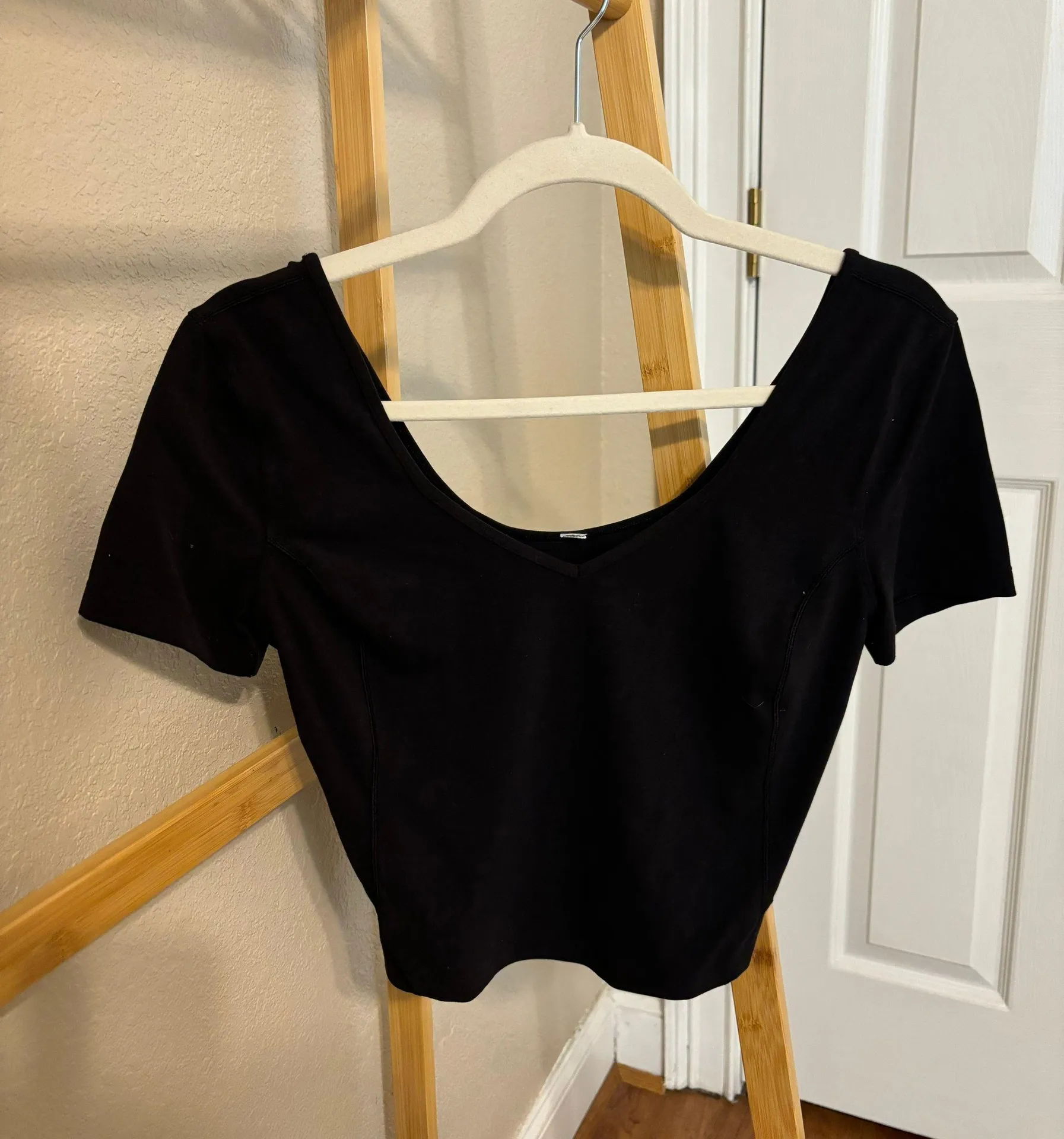Cropped black Lululemon tshirt. Tag cut out, but only worn twice.