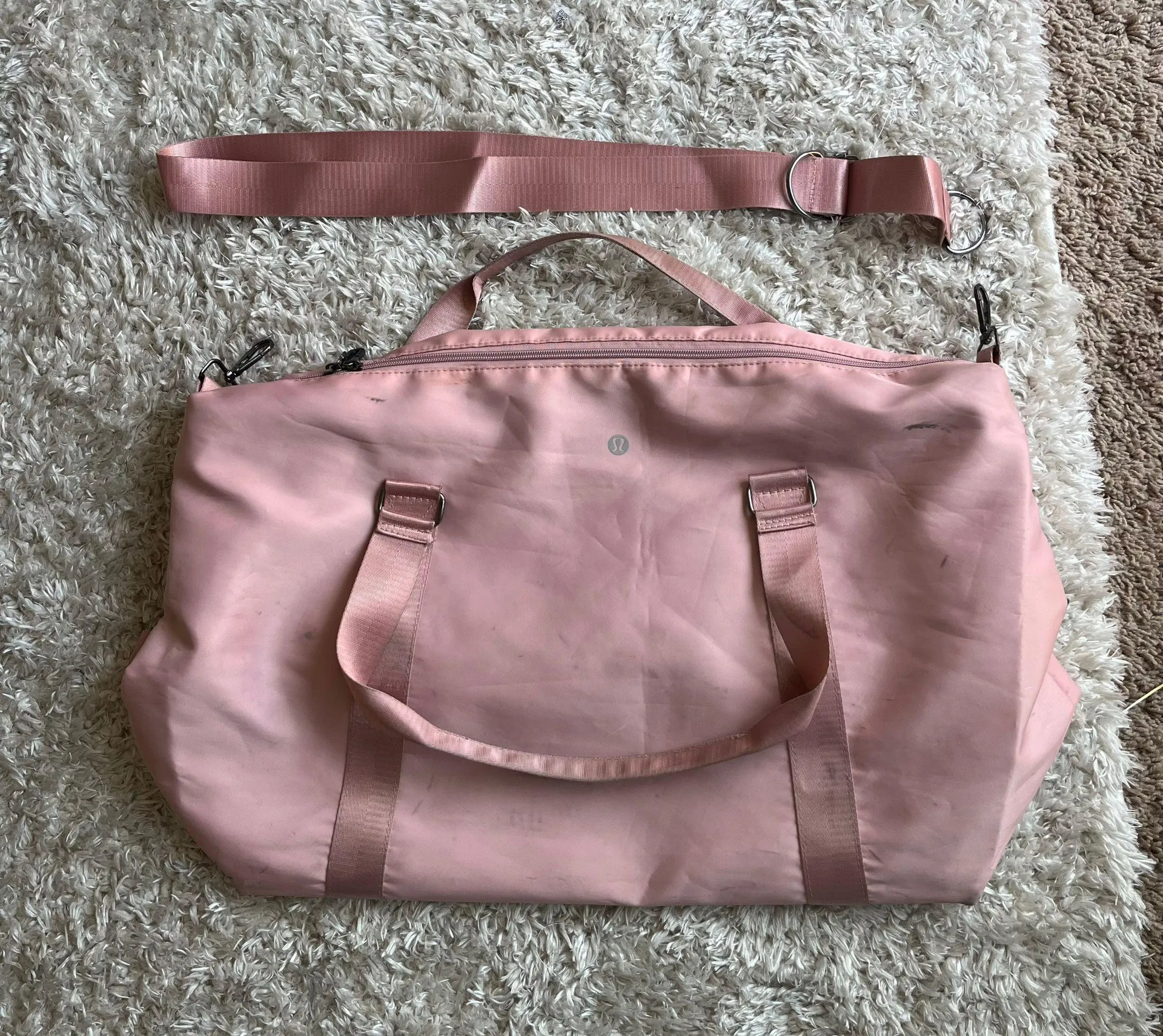 Lululemon pink duffle bag! Great for travel or the gym. lightweight with many pockets. Comes with a... Show more