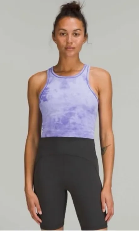Size 4 Lululemon Ebb to Street Cropped Racerback Tank Top Marble Dye Charged Indigo. Perfect conditi... Show more