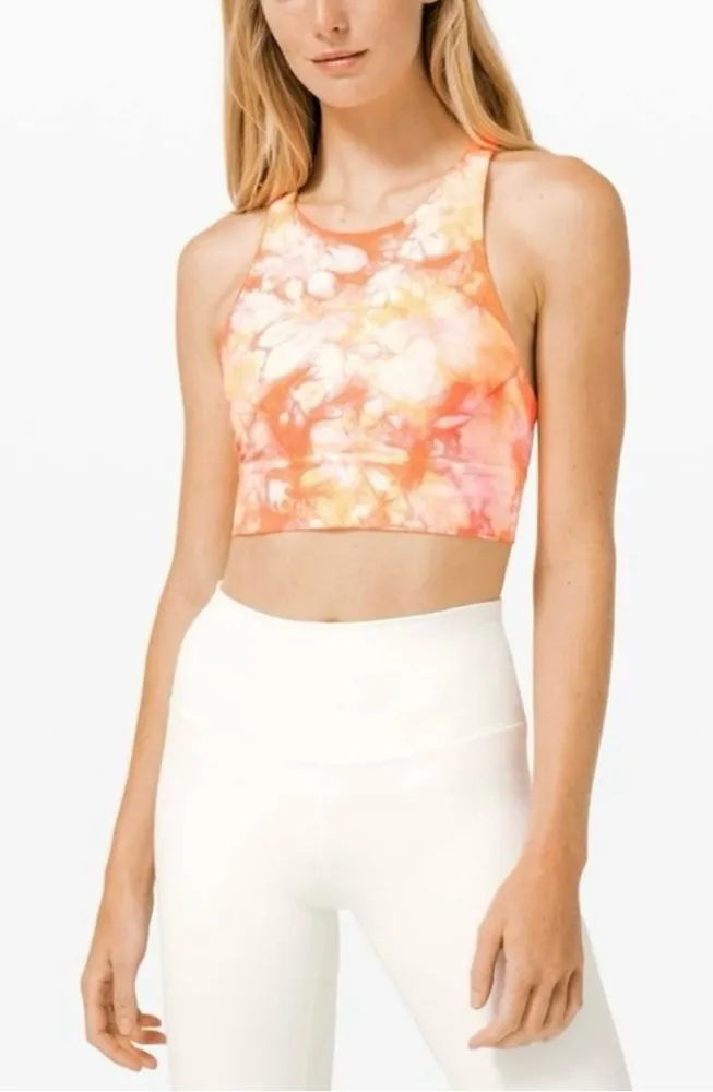 Rare retired gem! NWOT Lululemon Energy Bra High Neck Long Line in the stunning Dual Shibori White G... Show more