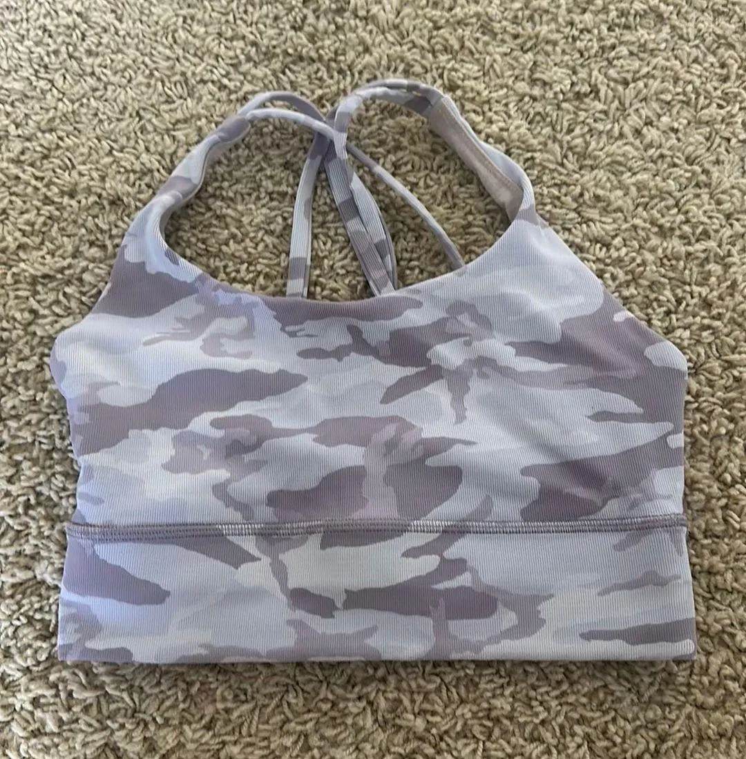 Color: Purple and Gray Camo Condition: Great! No flaws Size 6, Longline and ribbed! Just didn’t fit... Show more