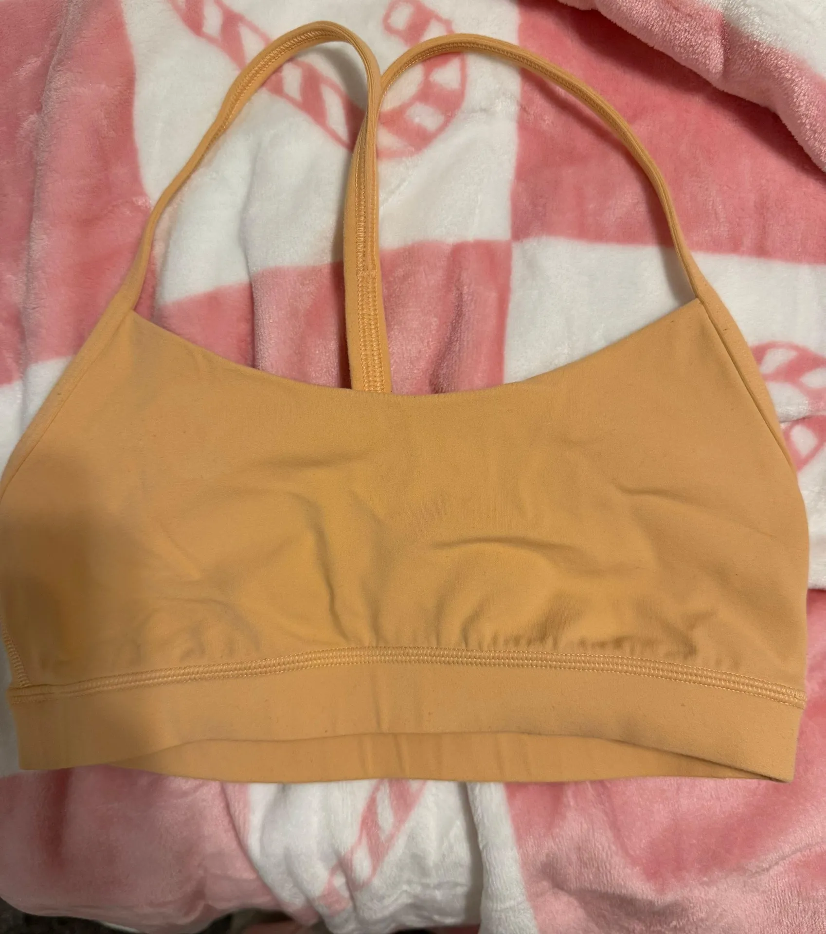 only worn a couple times, never dried. orange cream color. size 6, padding removed!