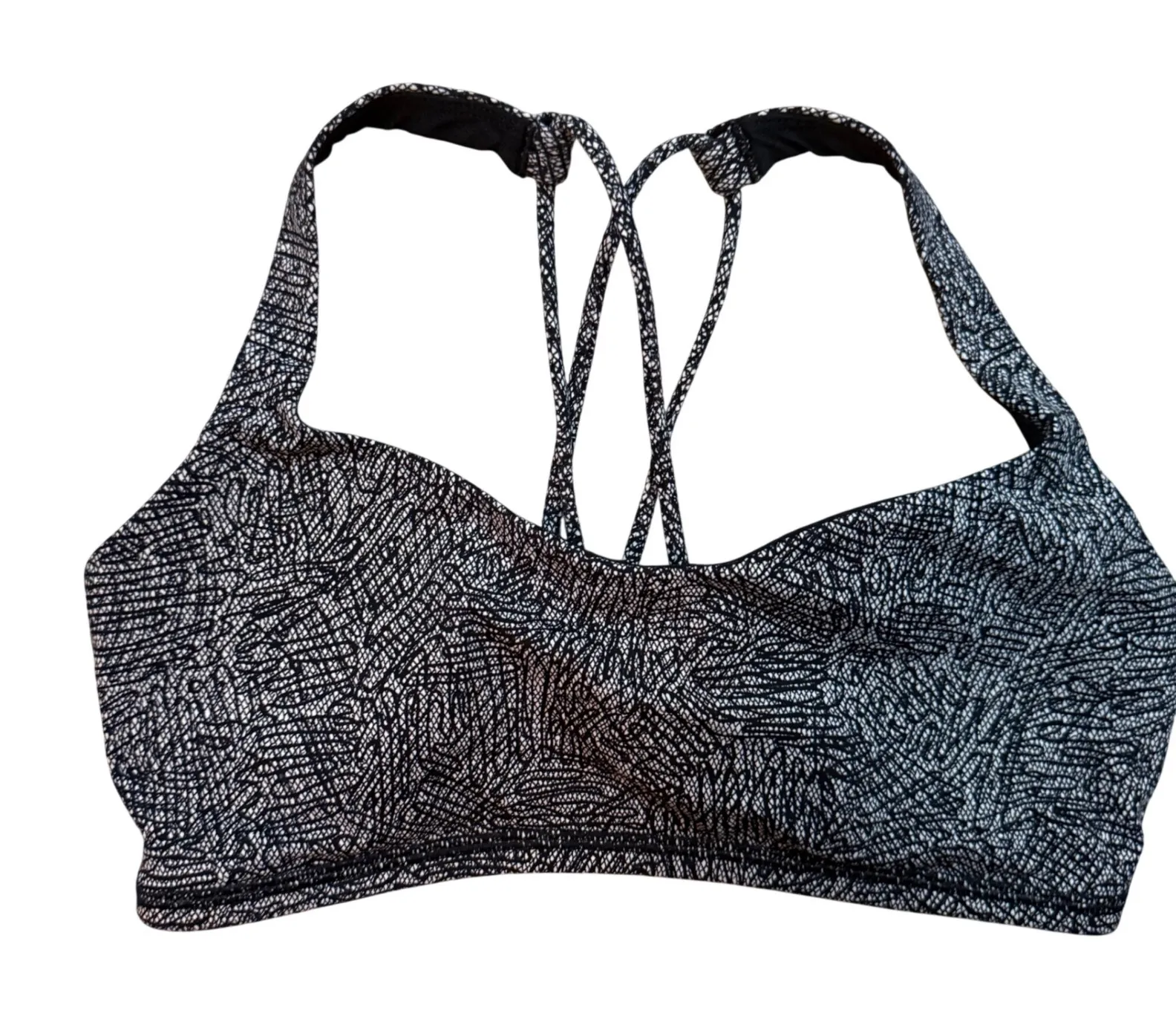 Keywords: Lululemon, sports bra, activewear, workout, athletic, yoga, gym, fitness, strappy, geometric, print, support, performance, athleisure