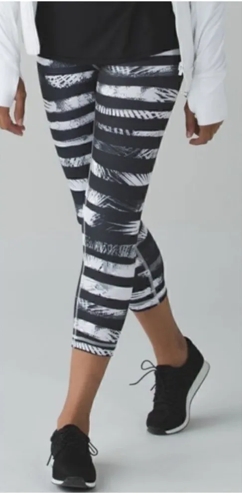 Lululemon Full-On Luon Wunder Under Crop II Leggings (Shady Palms) - 4 Tight fit wide, soft waistba... Show more