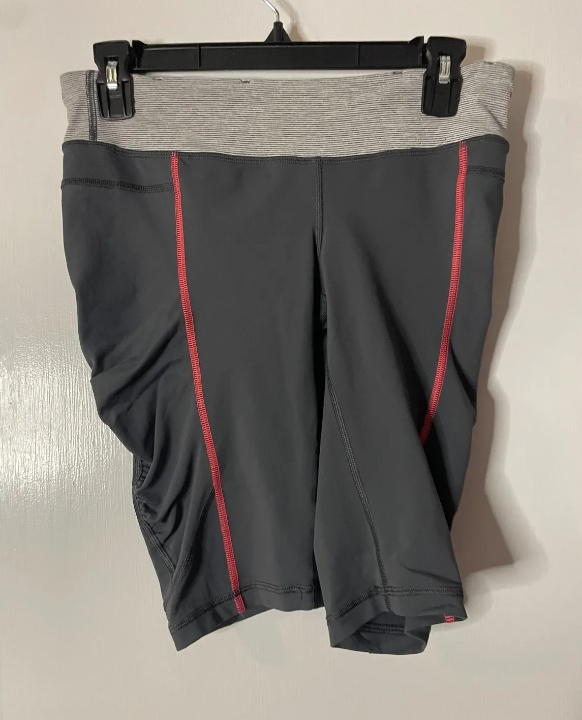 Waist measured flat 14" Front rise 8" Inseam 12" Color: Gray Department: Women Style: Cropped Type:... Show more