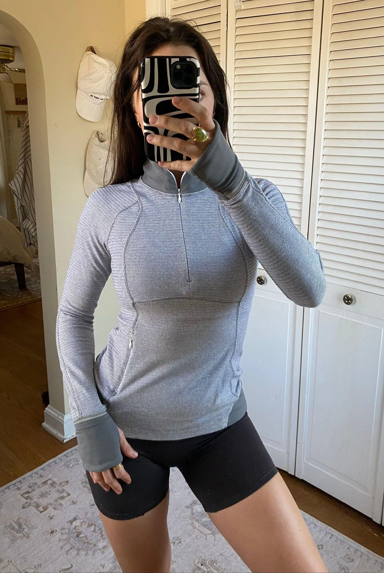 Perfect condition Lululemon jacket worn just once! Thick and stretchy warm material, a pocket, and hand covers that wrap all the way over your hand. Quarter zip great for running!