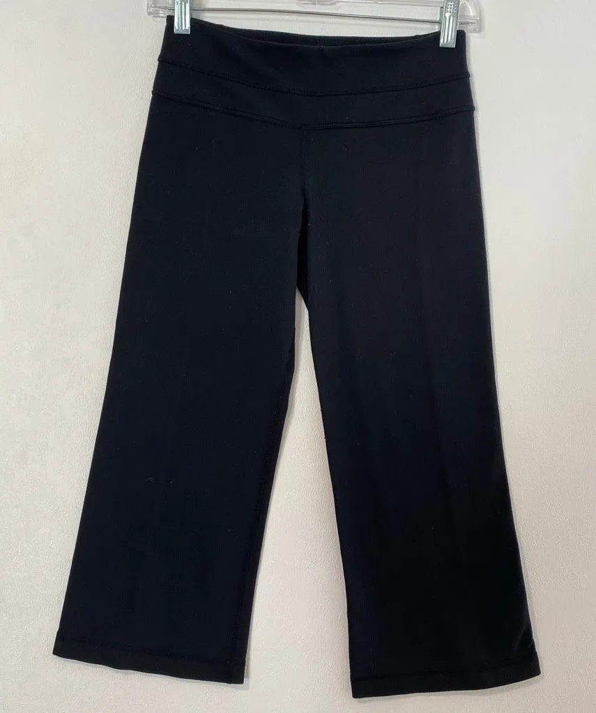 Lululemon black Groove Crop pants in size 4. Mid-rise fit with slight bootcut cropped leg, perfect f... Show more