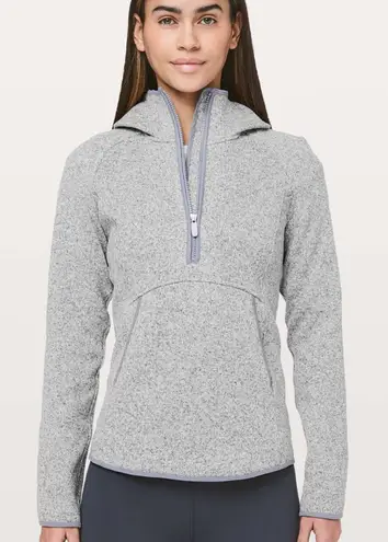 Heathered Silver Lilac Lululemon Fleece and Thank You Pullover 1/2 zip front Kangaroo front pocket... Show more