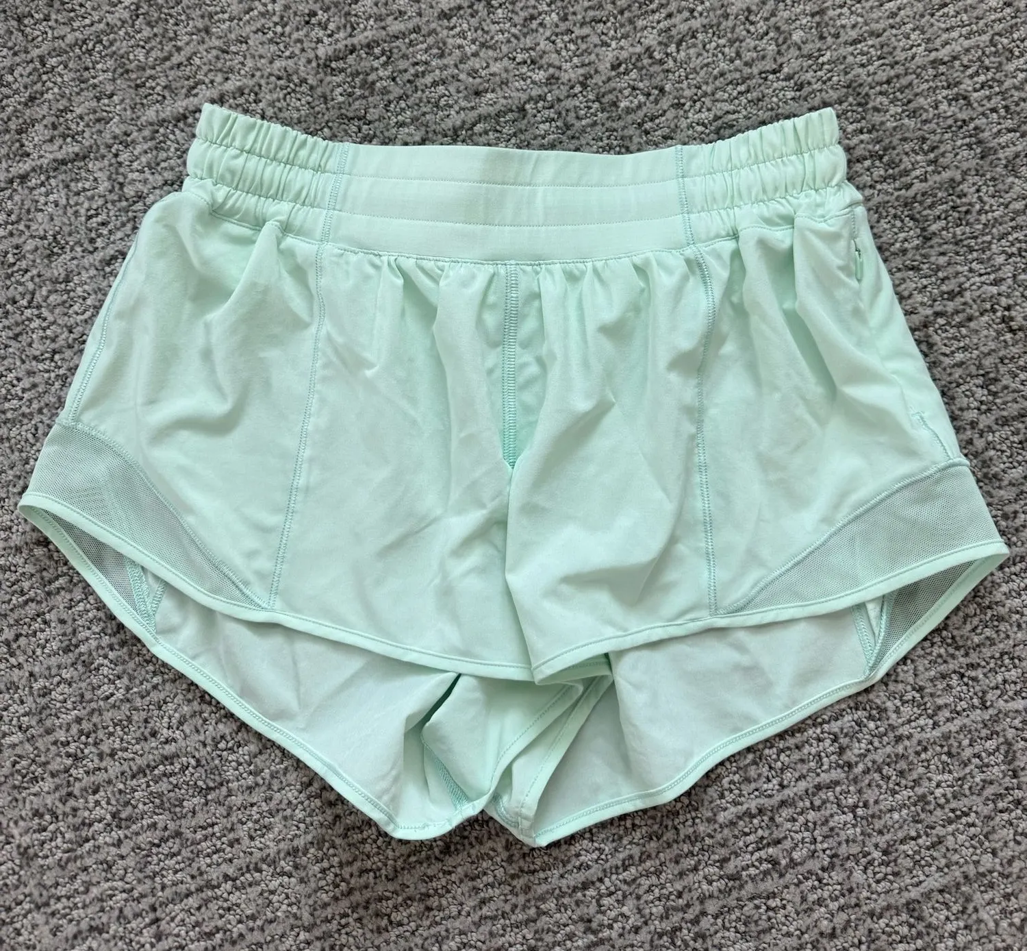 light green Lululemon hotty hot shorts 2.5. liner is cut out* the liner is cut out